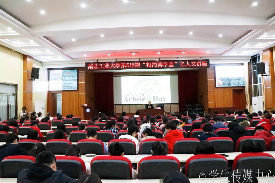 周二正逢植树节,教授特意挑选这个绿色的日子来开展学术讲座。其一是为展示我校积极主动参加此全球性的庆祝活动,配合国际社会宣传这个特殊月份的绿化环保节目,为人类生态文明发展献一份绵薄之力;二便是针对我校“绿色校园建设”政策介绍美国高校校园绿化、生态化的发展现状,与湖工大师生分享相关知识,希望提高湖工大学子对可持续发展的认识,并最终付诸实践!