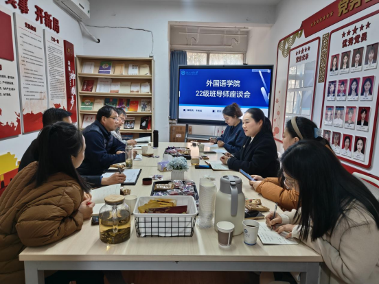 为全面落实立德树人根本任务,深化班级管理与学风建设,2月-3月,外国语学院针对大一至大四年级学生成长特点,分阶段组织召开四场班导师座谈会,聚焦不同年级育人重点,细化指导方案,形成全员、全过程、全方位“三全育人”新格局。