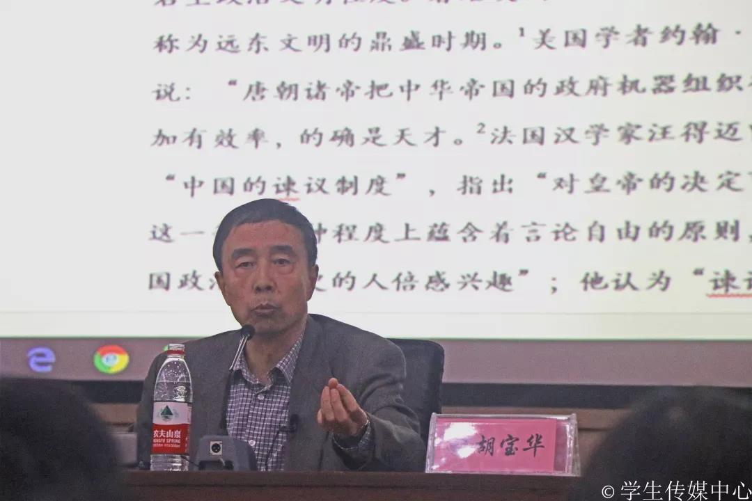 唐代不仅有在制度上的飞跃,还有对道统的维护,“大道之行,天下为公”是御史与谏官的使命,唐朝谏官的弹劾实例数不胜数。法国文学家汪得迈曾撰写专文研究“中国的谏议制度”,指出“对皇帝的决定可以提出批评,这一条在某种程度上蕴含着言论自由的原则,每每令研究中国政治制度历史的人倍感兴趣”。日本京都大学教授砺波护也曾说:“自七世纪遣隋使唐使以来,到十九世纪末,中国一直作为日本的憧憬与楷模。”在这里胡教授便提到了我们要有民族自信,中华儿女有着优良的传统,这盛世由我们创造!