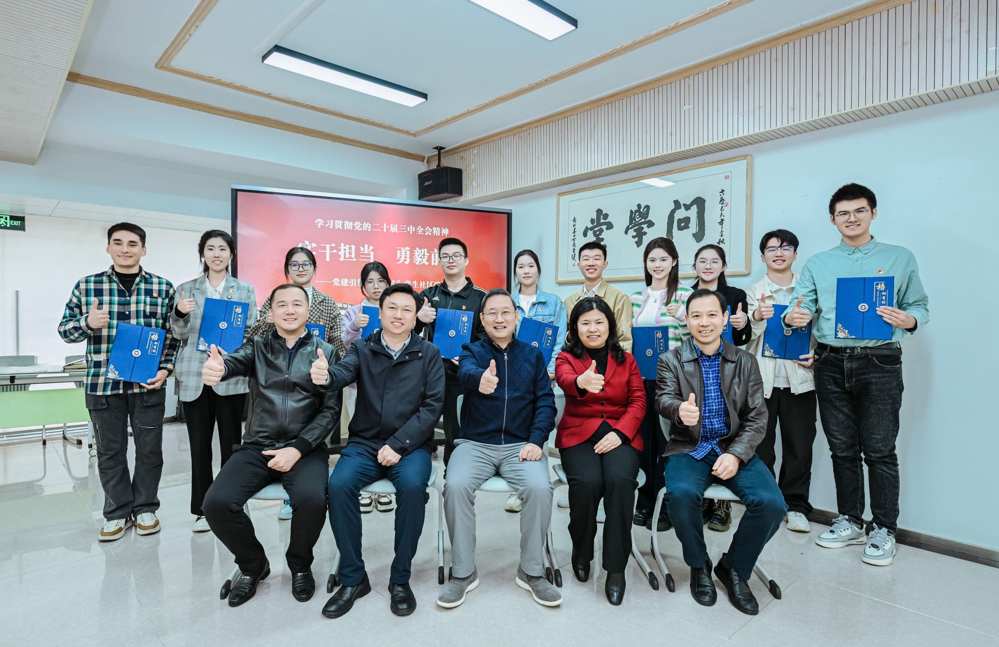 彭育园在听取了师生的交流后总结讲话。他对学生党员们的政治素养、实干担当和先锋作用表示肯定,为同学们的大学所学所获感到骄傲,并对与会同学逐一回应指导。他指出,学生党员们拥有“自我”与“组织中的自我”的双重角色,自我层面要处理好人与社会、自然以及身与心的关系,组织中的自我要发挥好党员先锋模范作用,时刻保持党员先进性。他强调,党的力量来自组织,党支部是党的基层组织和战斗堡垒,党员是有着特殊且重大使命的群体,应以更大的格局、更宏伟的世界观,充分展现榜样力量。