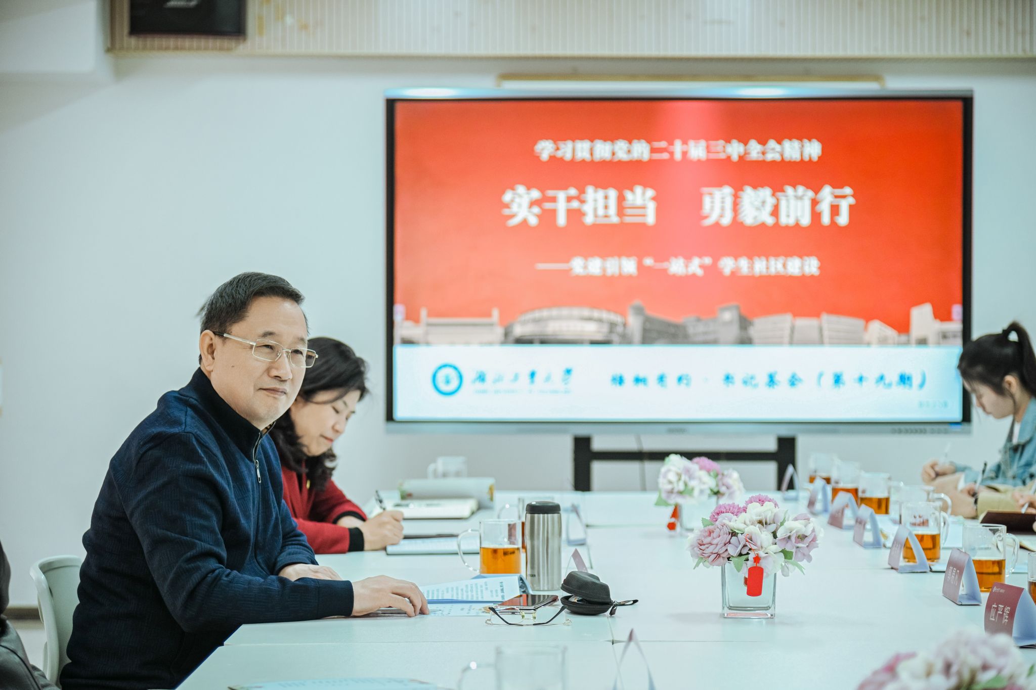 胡晓艳为学生党员们的成长思考、实际行动与学习成果点赞。她指出进一步加强党建引领,提升学生的主体意识,服务学生成长成才,是学校“一站式”学生社区建设改革的初衷和重点方向,期望同学们永葆初心追求卓越,勇担使命不懈奋斗。