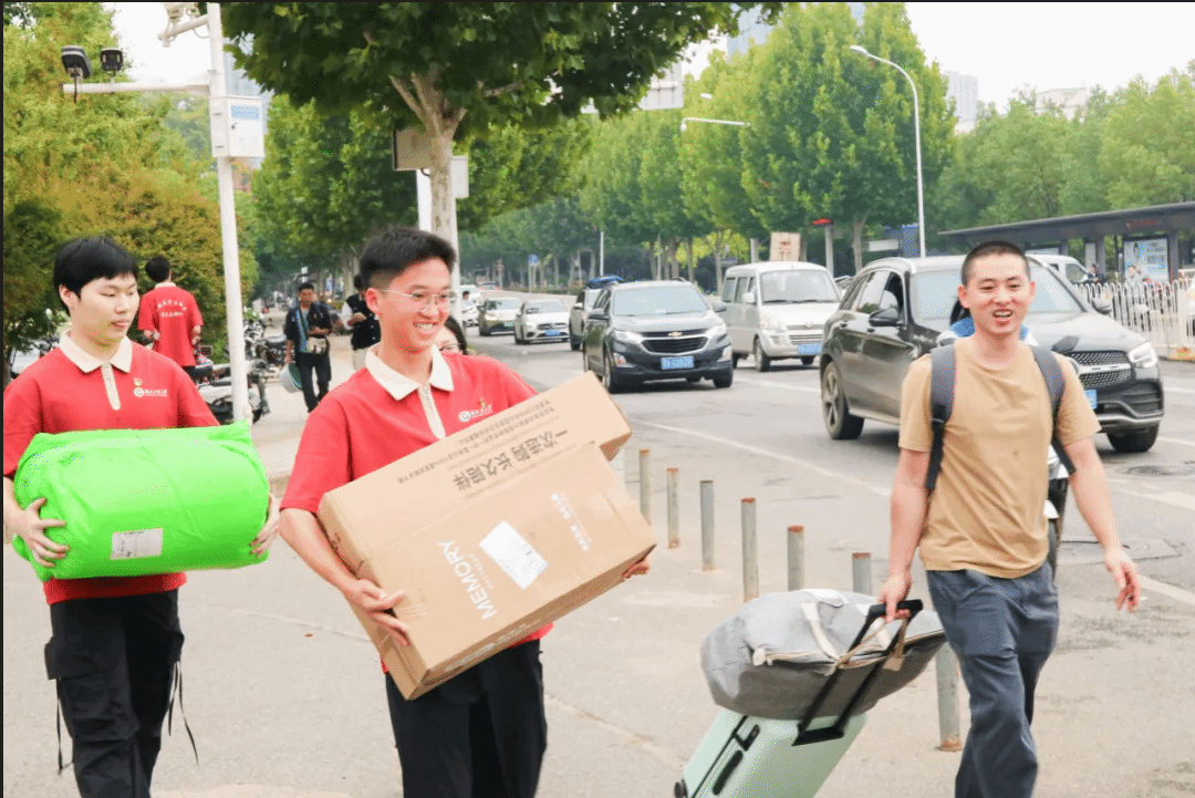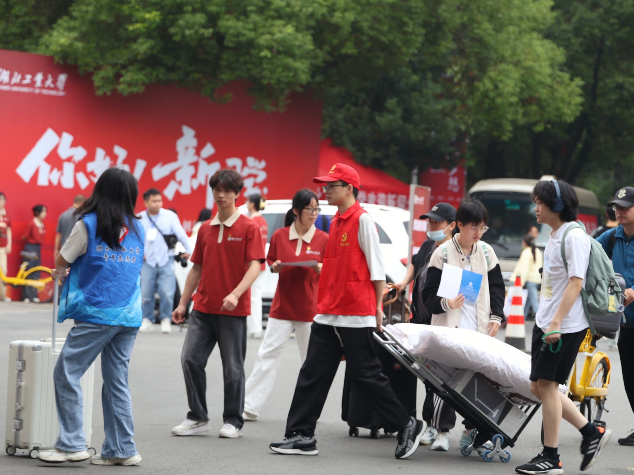 为保障迎新工作高效有序,学校提前统筹部署,各部门协同联动,全力营造便捷、高效、温馨的入学环境。校内安排循环摆渡车,方便新生快速抵达宿舍区域,沿途设置的8个迎新咨询点与家长休息区持续提供饮用水与指引服务,确保迎新流程顺畅运行。由师生党员组成的“党员先锋队”在火车站、地铁站等交通枢纽设立迎新服务点,为新生提供暖心引导与帮助。