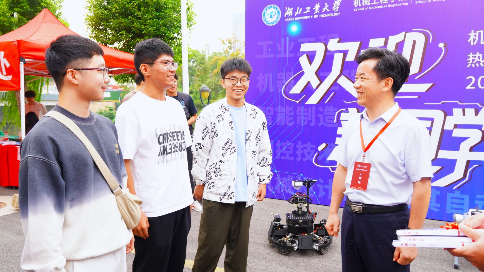 各学院结合学科特色,在学生社区精心营造了温馨而富有创意的迎新氛围:机械学院“五彩机械”社区驿站前,人形机器人与新生互动握手,吸引众多目光;电气学院“电亮未来”社区驿站的机器狗随乐起舞,科技感十足,赢得阵阵喝彩;工设学院“同工艺彩”社区驿站以创意镜头签留下青春印记;经管学院“超能经管”社区驿站通过“职业盲盒”帮助新生启航生涯规划;理学院“与理同芯”驿站赠送定制文化衫等实用礼品,营造家一般的温暖;计算机学院、外语学院与底特律学院均开展“时空胶囊”寄语活动,新生将写好的信笺贴上封条投入箱中,许下与未来自己的毕业之约,待2029年盛夏毕业之时再度启封……