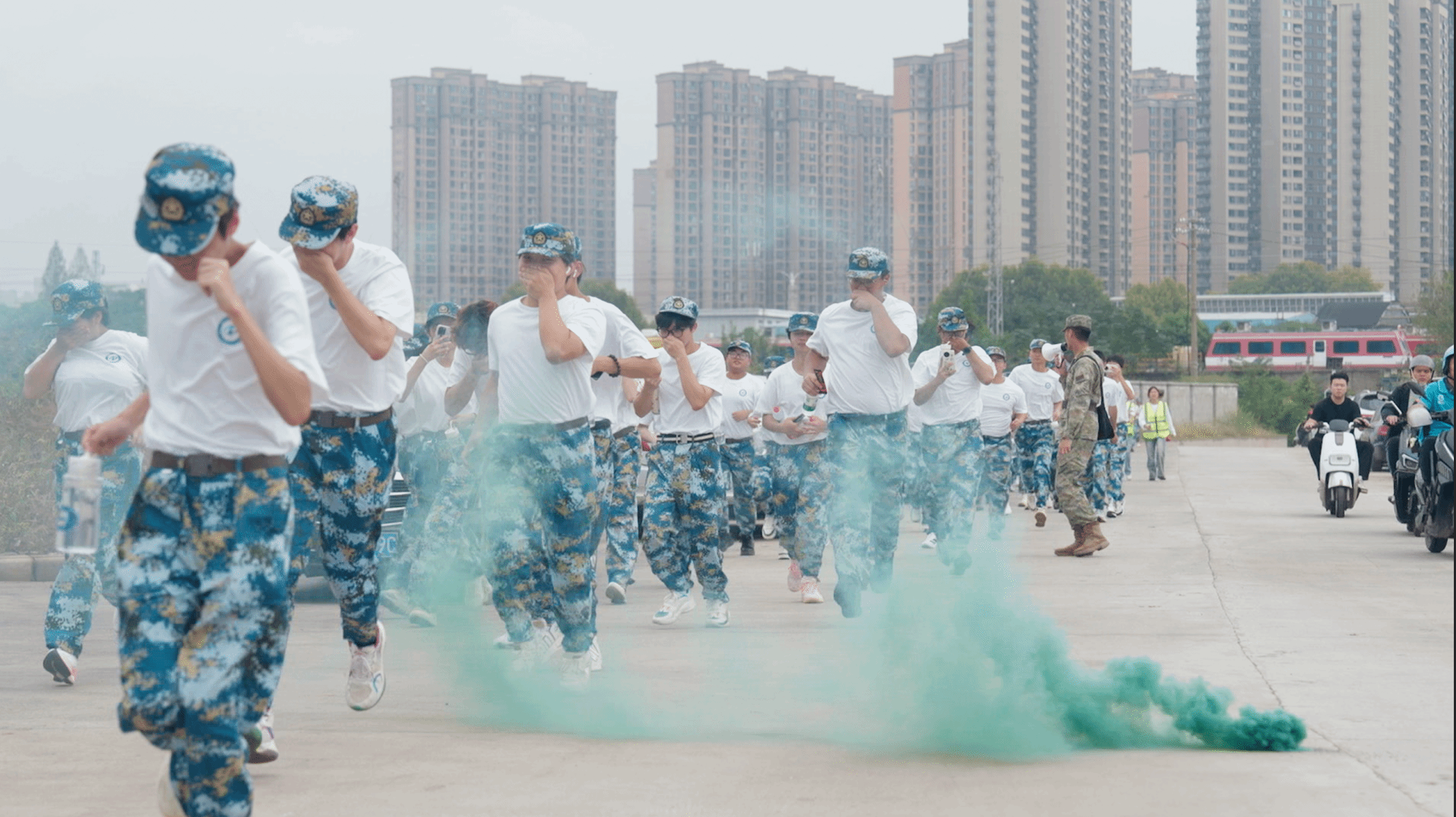 中午11点38分,7000余名新生在学校中区操场集合,随着校党委副书记、副校长桂丽的“出征”口令,在大学生管弦乐团铿锵有力的演奏下,队伍迈着整齐步伐,踏上拉练征程。