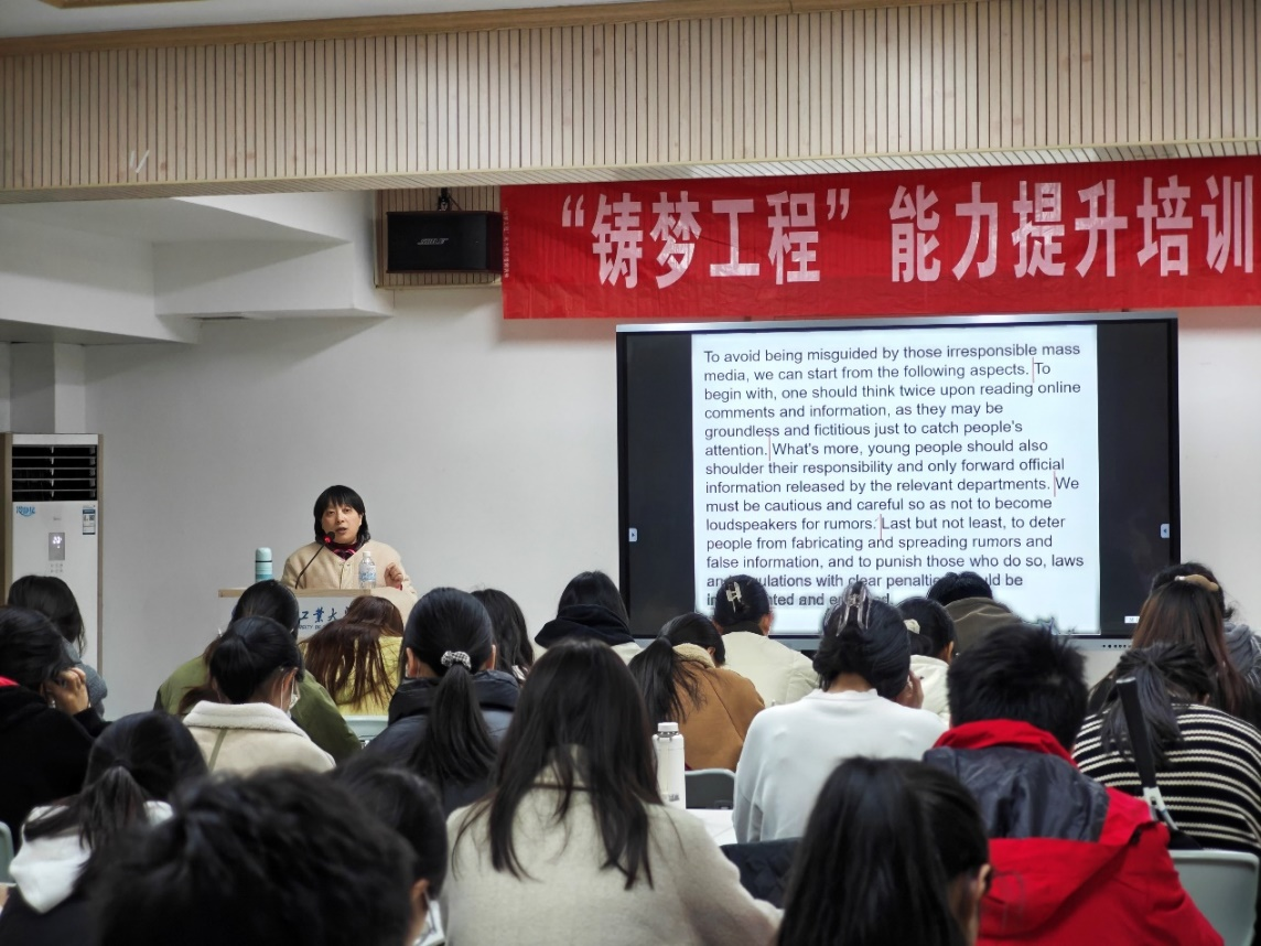 11月20日至12月4日,第49期“铸梦工程”六级冲刺活动在问学堂成功开展。本次活动特别邀请外国语学院教学经验丰富的杜亚芳老师为同学们授课,以“六级冲刺,精训提升”为主题,分三次课开展。全校50余名同学坚持上完三周课。