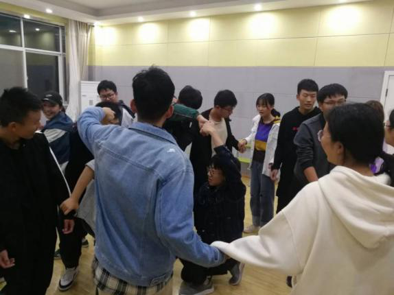 在破冰环节,组织了“雨点变奏曲”、“自我介绍”、“爱的抱抱”、“巧解千千结”等游戏。破冰环节让团辅成员之间有了相互的了解和认识,感受到了团体产生的强大能量,形成了成员间彼此信任、相互协助、融洽相处的良好氛围,同时也使新生认识到大学生活与以往的不同,对自己大学的生活充满了期待与希望。