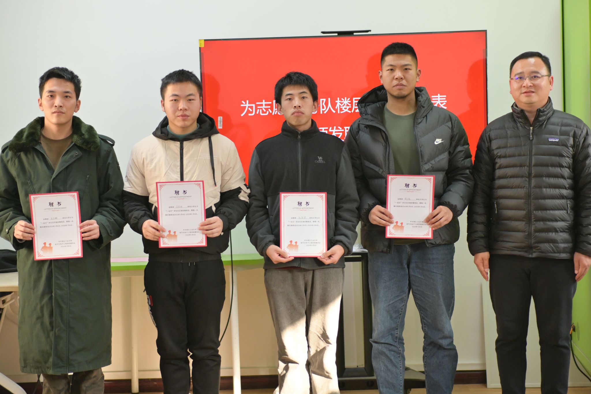 与会领导、教师为王石、齐明阳、周江河等7名首批“一站式”学生社区楼层管理员颁任聘书,敦促其进一步发扬退伍大学生的榜样作用和志愿服务精神,进一步发挥“一站式”社区学生自我管理、自我服务、自我教育、自我监督的功能。